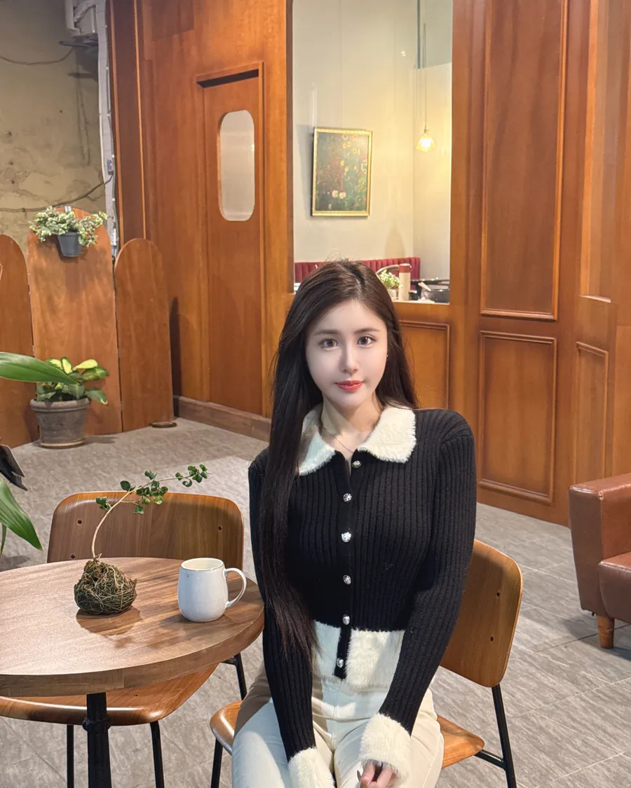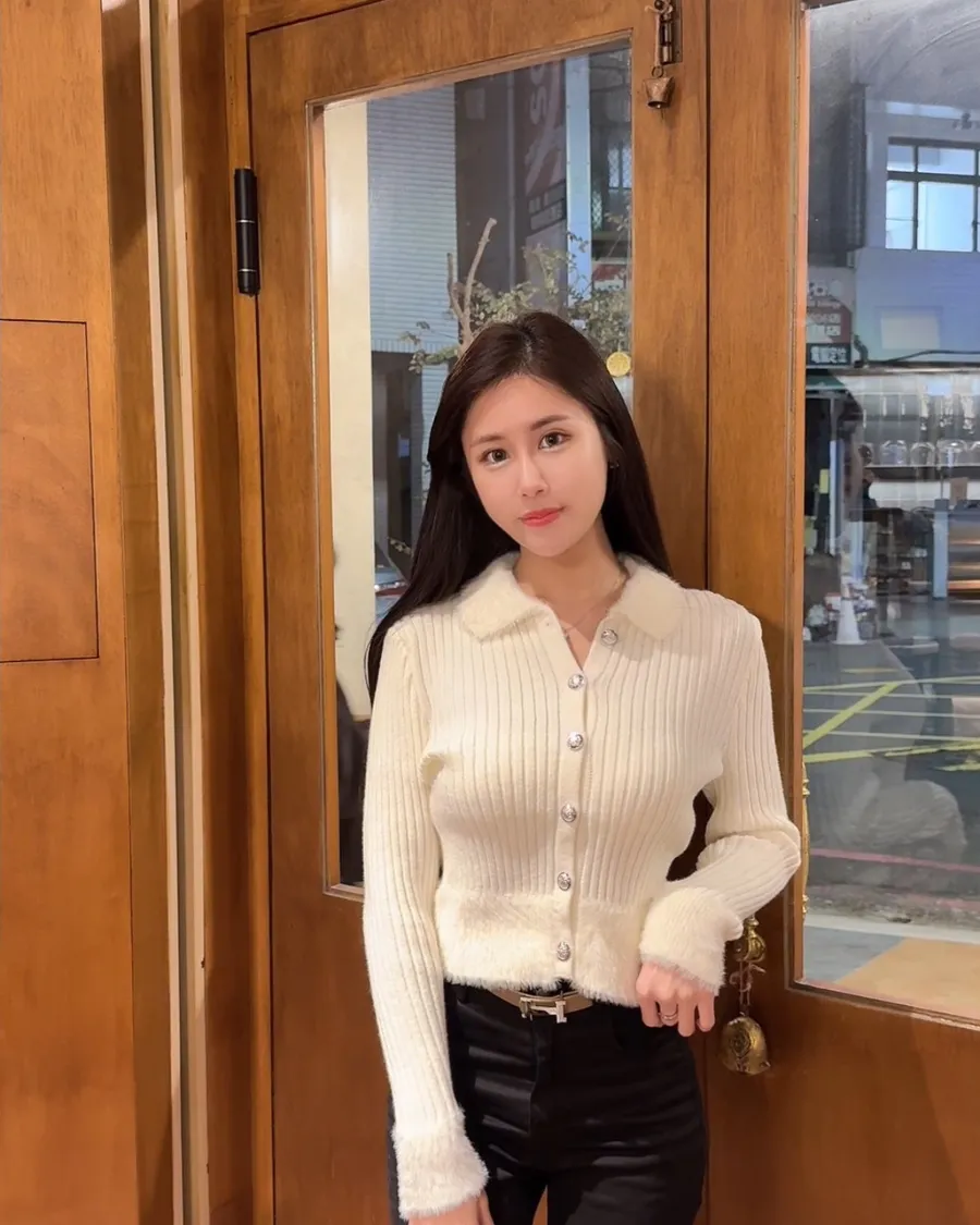 領口毛毛設計, 替簡約版型多加一點溫柔層次, 低調卻很有存在感。 布料親膚不刺, 貼身穿也舒服, 整體線條順身不厚重。 單穿就很有質感, 搭配外套或背心也不顯膨, 日常、約會都能穿出柔軟氛圍的一款上衣。