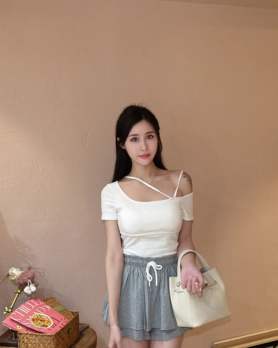 不對稱斜肩設計,簡單穿就很有造型感 ✨ 露出鎖骨線條,微性感又顯氣質 俐落剪裁修飾上半身比例 單穿就很吸睛,搭配牛仔褲或長褲都好看 日常約會、聚餐、出門拍照都很適合 💫 一件就能穿出時髦氛圍 懶人也能輕鬆駕馭的設計款 🤍