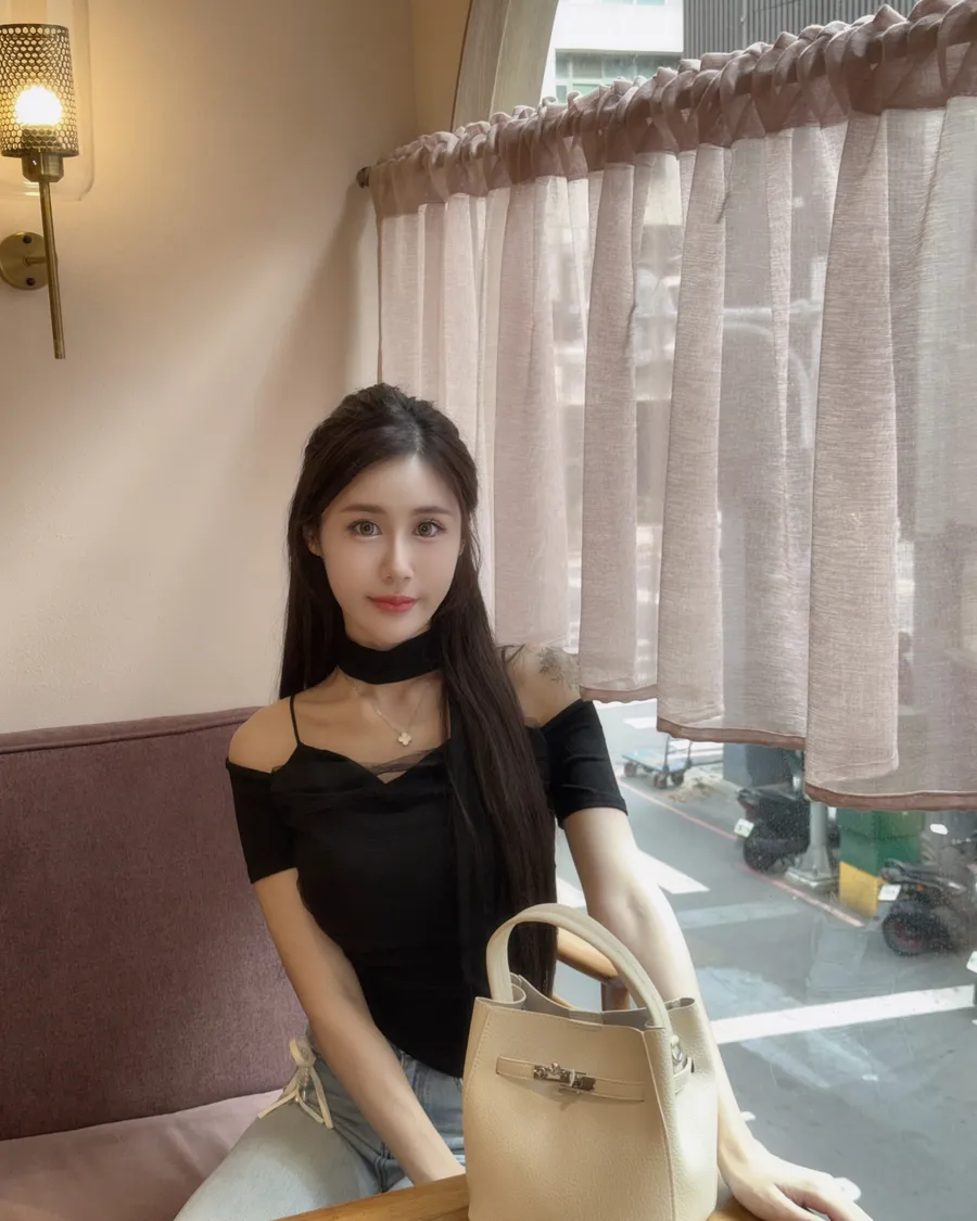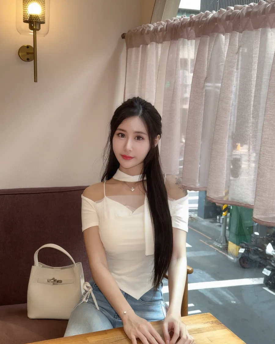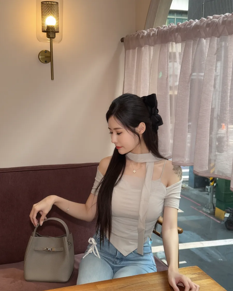 脖子綁繩細節,修飾肩頸線條更顯氣質