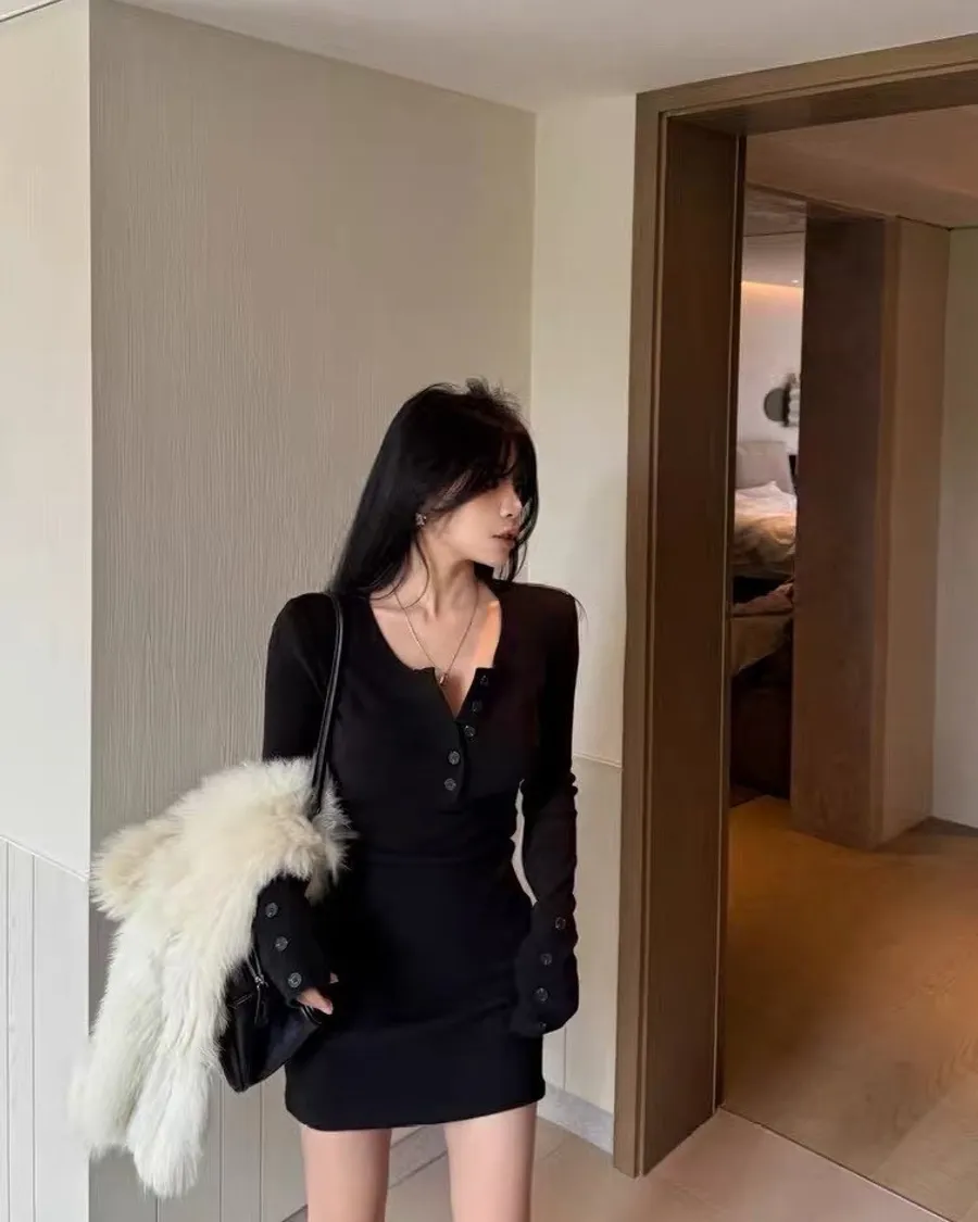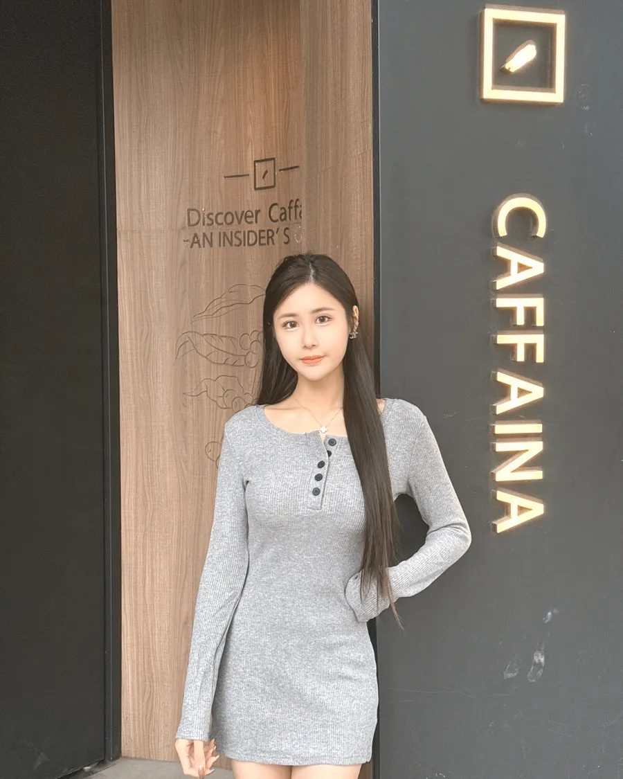 從日常到約會都很實穿的一款排扣連身洋裝。
