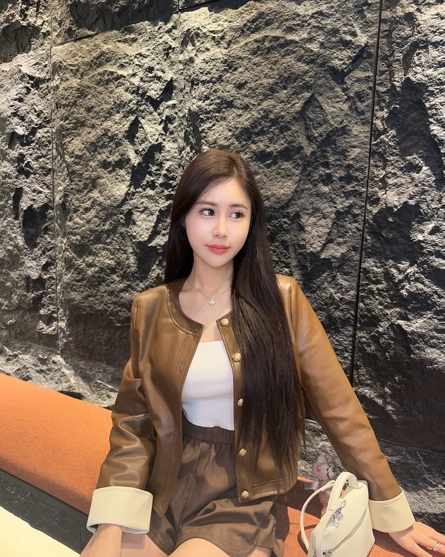 高級焦糖拼色皮外套